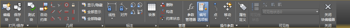 一个称为块编辑器的新选项卡显示在功能区中,并在该块编辑器中打开一个新图形。