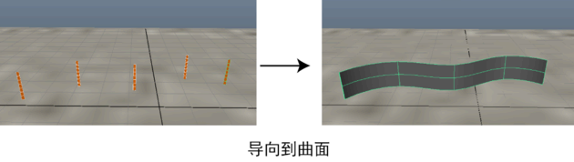 根据导向位置将选定的导向转化为放样 NURBS 曲面。