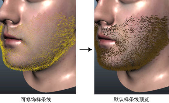 ) 描述时,XGen 会在与可修饰样条线相同的位置生成与之形状相同的默认样条线。