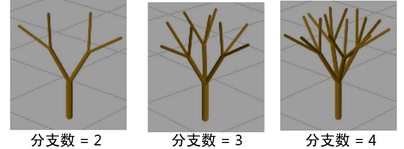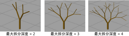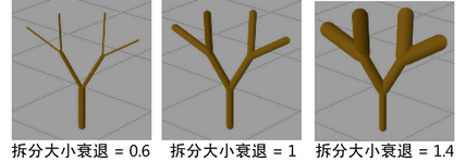 定义每次分支时应用的管大小因子。如果该值为 1,则分支的大小与其上一级分支相等。如果该值小于 1,则分支的大小小于其上一级分支(类似于真实树的分支)。如果该值大于 1,则分支的大小大于其上一级分支。
