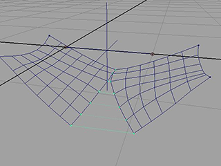 因为两个 nCloth 的边彼此重叠,所以您可能很难选择两个平面上的所有顶点。为使该过程变得简单一些,可以稍微移动两个平面,使其彼此分离,然后选择顶点。如果执行该操作,请确保将平面返回到其原始位置,然后再继续该示例。