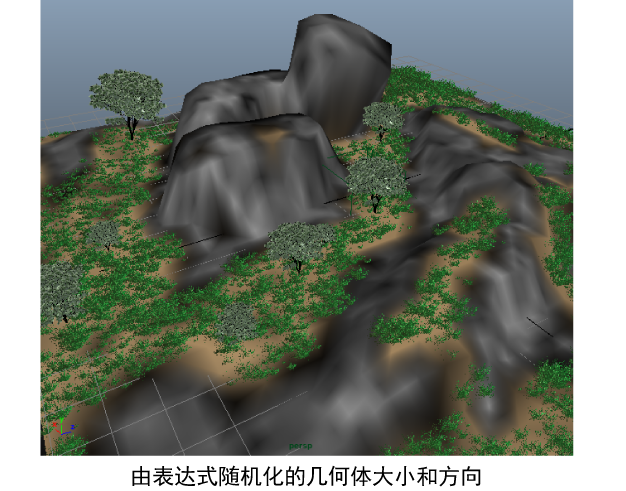 也可以使用 randomizer() 表达式来改变场景中草丛的大小和方向。