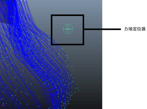 “力场”(Force Field)定位器将显示在选定头发曲线的旁边,而 dynamicConstraint 节点将显示在“属性编辑器”(Attribute Editor)中。