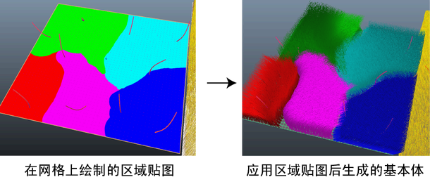 如果您创建了一个带导向的描述,您就可以用区域贴图来覆盖导向为网格上基本体放置和行为进行插值的方式。