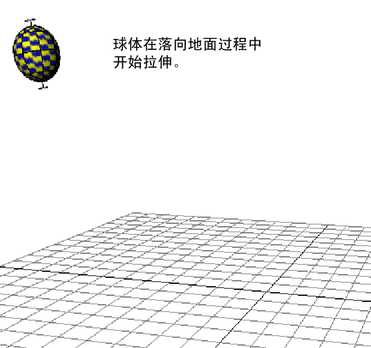 可以使用挤压变形器来创建挤压和拉伸效果。本示例显示如何可以为反弹球动画设置球。