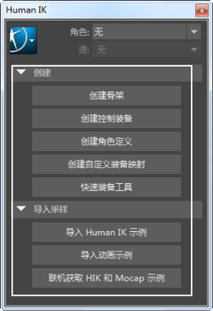 “创建”(Create)按钮,创建 HumanIK 骨架和有效的骨架定义。如果已有骨架,而该骨架需要定义,请选择