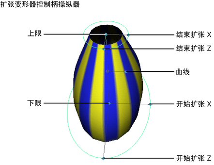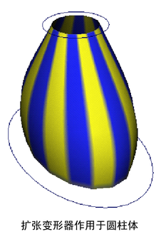 扩张变形器可用于沿着两个轴扩张或锥化任何可变形对象。其可用于角色设置和建模。扩张变形器包括控制柄,控制柄将可用于以直观的方式来控制扩张或锥化效果的范围和曲率。