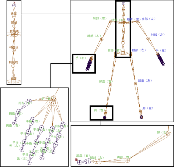 对于手臂,前臂关节将被设置肘部关节标签。对于腿部,踝部关节将被设置脚关节标签。