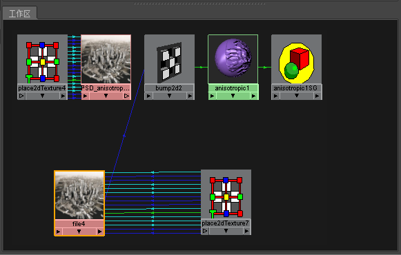 - 在 Hypershade 中,选择 PSD 节点(在我们的示例中为 PSD_anisotropic1)。