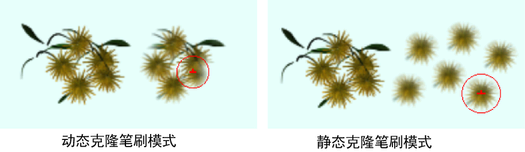 单击该按钮,然后单击曲面上的一个区域,以将该区域设定为源,或将从中克隆绘制采样的区域设定为源。如果在创建笔划期间在克隆源上绘制,原始绘制采样将用于笔划其余部分,但是下一笔划将使用更新后的克隆源绘制采样。
