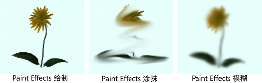 用“Paint Effects”笔刷进行模糊时,将会通过平均相邻颜色的颜色值来柔化相邻颜色的边。可以使用“模糊强度”(Blur Intensity)滑块控制模糊。操作设定为“模糊”(Blur)时不能执行整体应用。