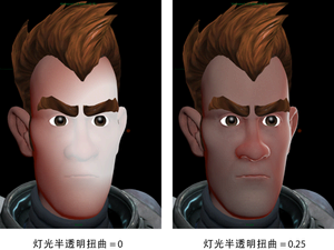- Translucency 功能模拟灯光穿过对象。例如,如果模拟人的蒙皮,蒙皮将变得更红。选择该属性可使用以下选项。
