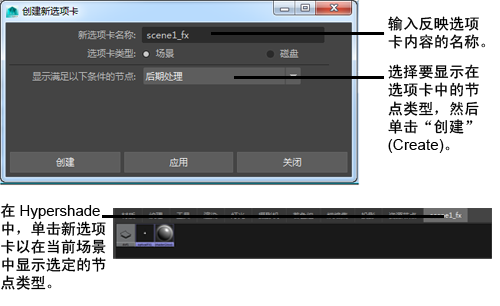 在 Hypershade 浏览器中创建新选项卡