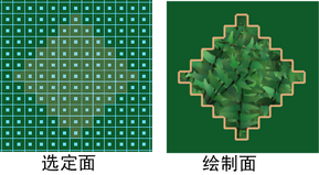 在多边形上绘制时,您可以仅绘制选定面,封锁其余的面并防止对它们进行绘制。也可以使用绘制整体应用您的选择(请参见整体应用选定的多边形面)。