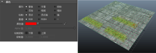 - 在平面上进行绘制。绘制为红色的顶点将采用草纹理值。现在,已通过绘制顶点混合纹理。