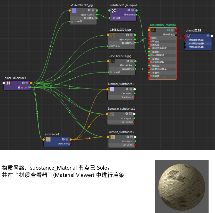 - 单放 substance_Material 节点,然后在“材质查看器”(Material Viewer)面板中渲染它。