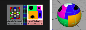 - 在“Hypershade”中,使用新的“PSD 文件纹理”(PSD File Texture)节点加载 PSD 图像文件(“创建 > 2D 纹理 > PSD 文件”(Create > 2D textures > PSD File))。