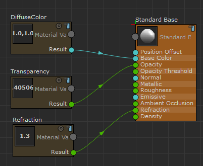 - 将“折射”(Refraction)的“结果”(Result)输出连接到“标准基础”(Standard Base)节点的“折射”(Refraction)输入。