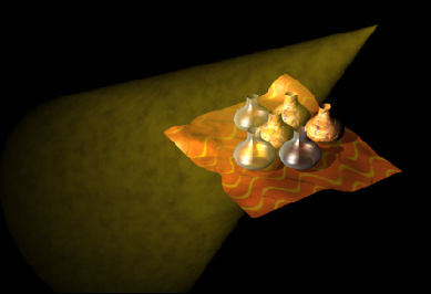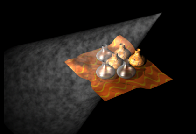 尝试该简单示例。通过将“体积着色器”(Volume Shader)映射到“聚光灯”(Spot Light)的“灯光雾”(Light Fog),可以将纹理映射到“体积着色器”(Volume Shader)的属性并更改雾的视觉效果。