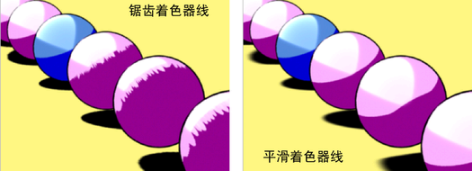 如果对象具有指定的渐变着色器(调整为类似于卡通着色器)并通过带有深度贴图阴影的区域光照亮,那么着色器的线可能会产生锯齿边。若要解决此问题,增加“过滤器大小”(Filter Size)(位于区域光的“属性编辑器”(Attribute Editor)中的“深度贴图阴影属性”(Depth Map Shadows Attributes))。如果还不足以消除锯齿边,同时增加“偏移”(Bias)属性。