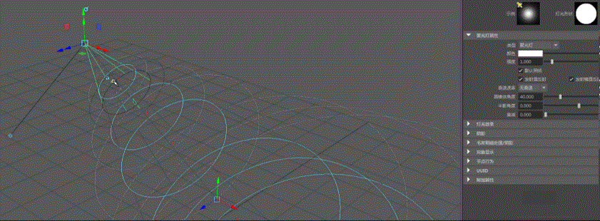 调整圆锥体半径操纵器以更改聚光灯光线的角度。仅聚光灯包含此选项。