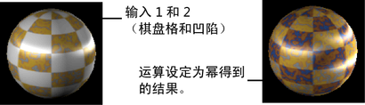 例如,如果“Input 1”是“棋盘格”(Checker)纹理,而“Input 2”是“凹陷”(Crater)纹理,则选择“无运算”(No Operation)时,仅会渲染“棋盘格”(Checker)纹理的属性。