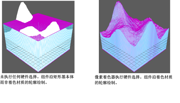硬件选择允许选择细分的几何体。此外,线框和组件在视口中绘图时使用同一轮廓作为着色材质。此技术有 7 个不同的过程。