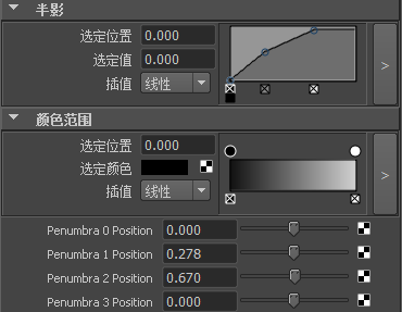)(现在位于“未绑定”(Unbound)部分中),以将渐变属性重新绑定到其原先发布的名称。打开资源的“属性编辑器”(Attribute Editor),该渐变将显示在“已发布的属性”(Published Attributes)部分中。每个已发布的点都会显示在该节点的已发布的属性的底部。编辑这些已发布点的值,以更新渐变上相应的点。
