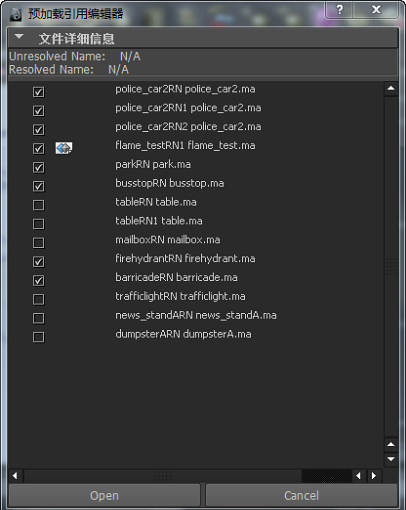 需要在打开场景时选择要加载或卸载的特定文件引用时,可使用“预加载引用编辑器”(Preload Reference Editor)。