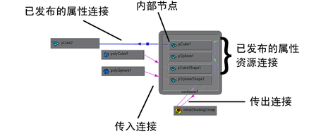 | 未发布的属性连接 | 显示来自/前往其他节点并去往/来自未发布属性的传入和传出连接。当锁定未发布的属性时,就不会建立或断开未发布的属性连接。 |