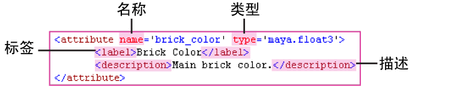 <attribute name='attribute1' type='maya.float3'> <label>Display Name</label> <description>Your description here.</description> </attribute>