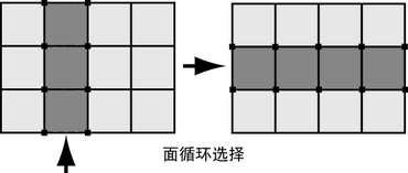 面循环是多边形面按其共享边顺序连接的路径。例如,如果选择球体的一个面,通过选择与选定面相邻的每个连续面,循环选择可以选择沿球体同一条纬度线和经度线的所有面。请参见选择面循环。