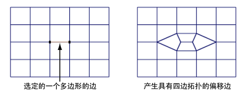 新的循环边将插入到与选定的原始循环边关联的多边形面中。原始部分循环边将一直保持选中状态,以便您可以对其执行其他操作。