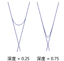 “深度”(Depth)的值越高,圆角曲线在相交角处放置的位置就越深。