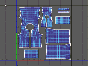 在 UV 编辑器中,将棋盘格图案纹理应用于 UV 网格的曲面和后面的 UV。请参见将棋盘格图案着色器应用到 UV 网格。 |