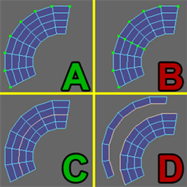 通过使用挤压和拉伸的 UV 来着色面,确定拉伸或压缩区域。请参见识别 UV 扭曲。 |
