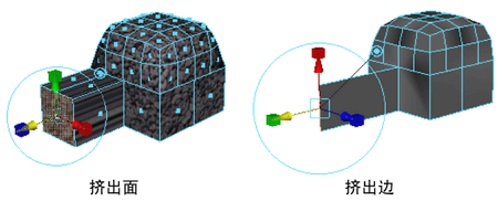 通过挤出多边形面、边或顶点,可以将多边形添加到现有网格。例如,挤出多边形网格上的某个面时,现有面在挤出的侧边上创建新连接面时会向内或向外压缩。