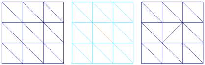 可以变换拆分两个三角形多边形的边,以便它连接对角。在多边形数量较少的模型的形状中,这通常会造成显著的差异,或改善多边形网格的可视流。