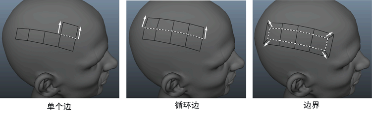 - 选择了任何“延伸”(Extend)选项时,按 Tab 键并单击鼠标中键拖动边界边来延伸循环。