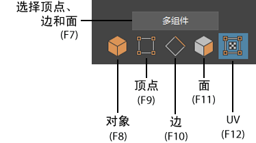 1. “建模工具包”(Modeling Toolkit)窗口中单击其中一个选择模式图标,或按热键来激活一个选择模式。