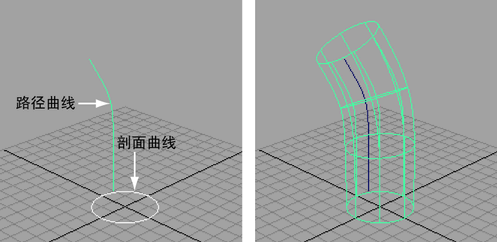 “挤出”(Extrude)操作通过沿路径曲线扫描横截面(或“剖面”)曲线来创建曲面。曲线可以是正常 3D 曲线、曲面等参线或边、修剪边或曲面上的曲线。挤出曲面的末端将打开;但是,可以使用“曲面 > 平面”(Surfaces > Planar)在每一端上创建封口。