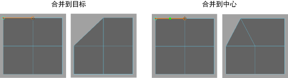 使用这些选项可设置在使用“目标焊接工具”(Target Weld Tool)时发生的情况。选择“网格工具 > 目标焊接”(Mesh Tools > Target Weld) > ,单击“建模工具包”(Modeling Toolkit)中的 ,或转到顶点(Vertex)标记菜单的“合并顶点”(Merge Vertices)部分时,“建模工具包”(Modeling Toolkit)中将显示以下选项。有关如何使用该工具的详细信息,请参见合并多边形组件。