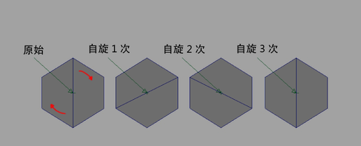 旋转边不会影响顶点 ID 或边 ID,但是在旋转边时,邻近面也会与它一起旋转。