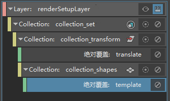 因此,当您在此集合上创建覆盖时,只能覆盖该集的属性。您不能覆盖集成员的变换节点或形状节点的属性。