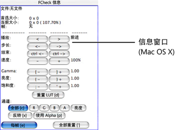 “FCheck 信息”(FCheck Info)窗口对于 Mac OS X 是唯一的。使用它来控制和修改图像或动画。