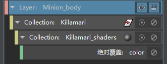 已创建 Killamari_shaders 集合,以及对应的颜色覆盖。