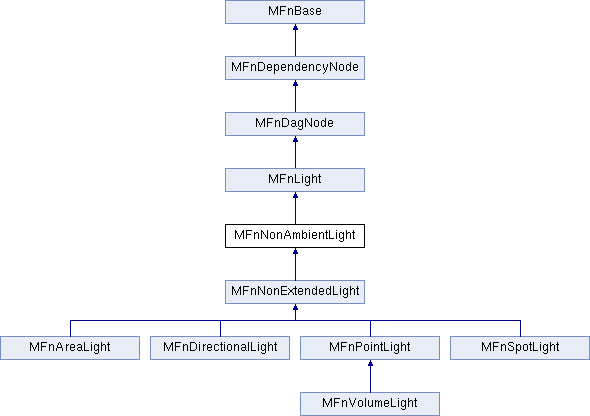Inheritance diagram for MFnNonAmbientLight:Public Member Functions | |
