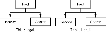 The use of the DAG path allows for object names to be reused. Object names can be reused as long as the same name does not appear on more than one DAG node with a common parent.