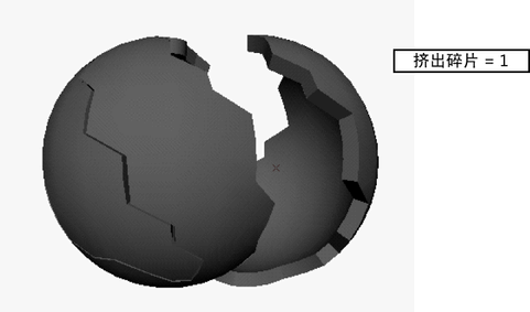 应用于“曲面破碎”(Surface Shatter)和“裂缝破碎”(Crack Shatter)效果。指定碎片的厚度。正值会将曲面向外推以产生厚度;负值会将曲面向内推。可以在创建破碎后编辑挤出量,请参见更改碎片的挤出值。