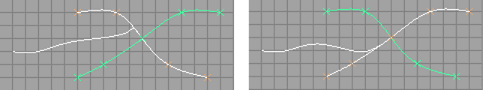提示: 如果构建历史处于启用状态,则可选择对齐节点,并使用“显示操纵器工具”(Show Manipulator tool)编辑切线比例和曲线点。